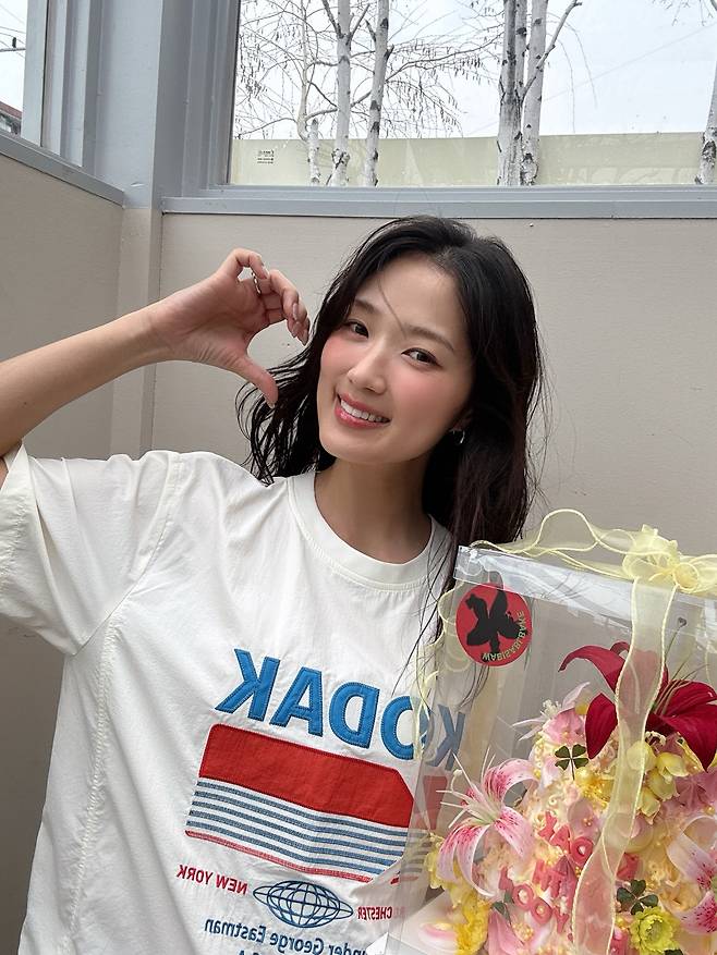 "복숭아 과즙미 뿜뿜" 김혜윤, 티셔츠 한 장으로 완성한 러블리 패