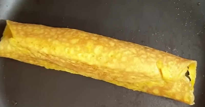 재료를 올린 뒤에는 계란이 어느 정도 익을 때까지 기다린다. 이때 젓가락이나 뒤집개를 이용해 살짝 말아주면 ‘롤’ 형태로 만들 수 있고, 그대로 두면 전처럼 넓게 부쳐 먹을 수도 있다. 취향에 따라 모양을 선택하면 된다. 한쪽 면이 익으면 뒤집어 반대쪽도 익혀준다.