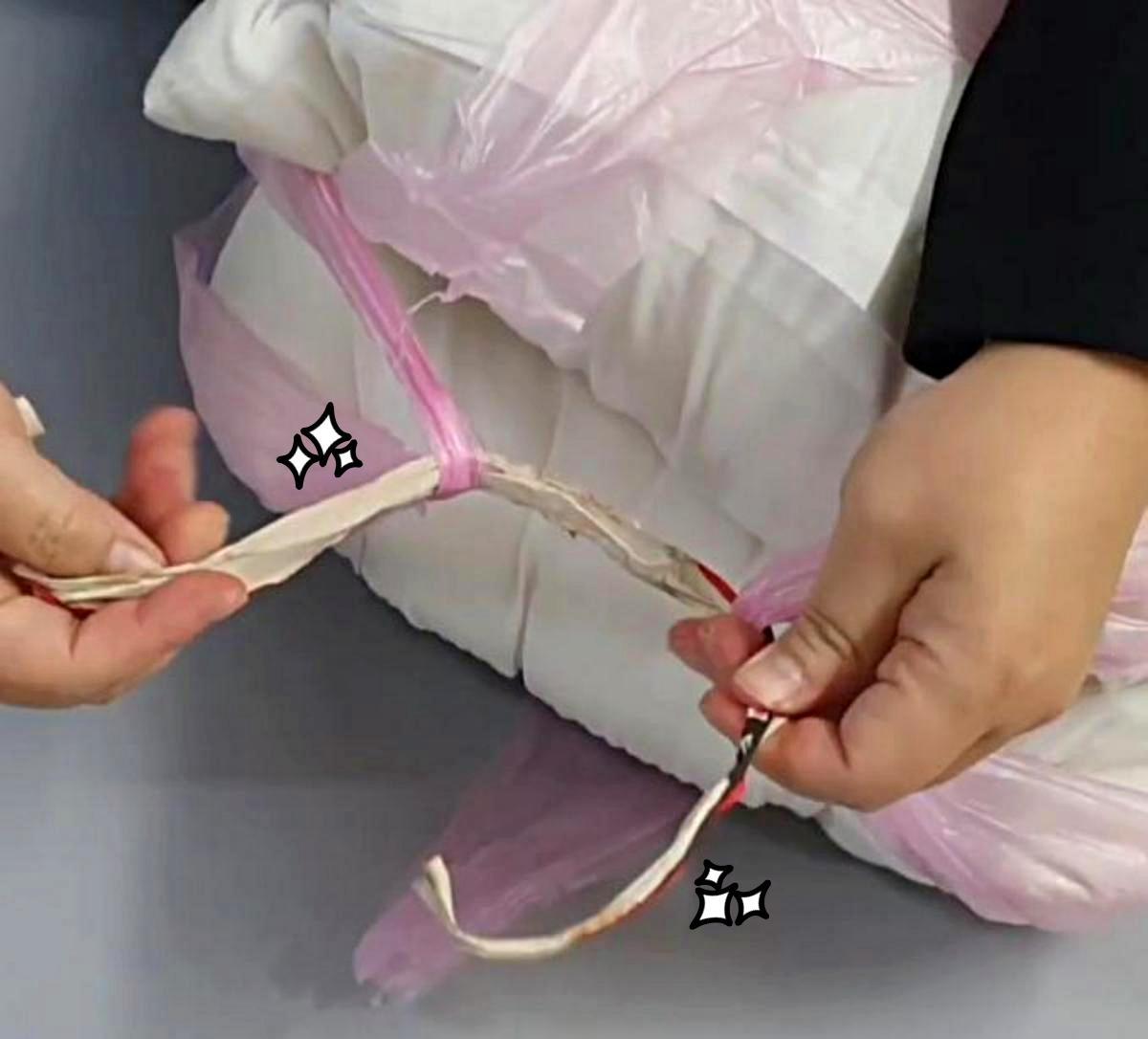 이 끈의 핵심은 내부 구조에 있다. 겉면의 붉은 종이 부분을 벗겨내면 안쪽에 얇은 '철심'이 들어 있다. 이 철심은 손으로 쉽게 구부릴 수 있을 만큼 유연하면서도, 형태를 유지할 정도의 강도를 갖고 있어 다양한 고정 작업에 활용이 가능하다. 별도의 도구 없이 손으로 가공할 수 있다는 점도 장점이다.