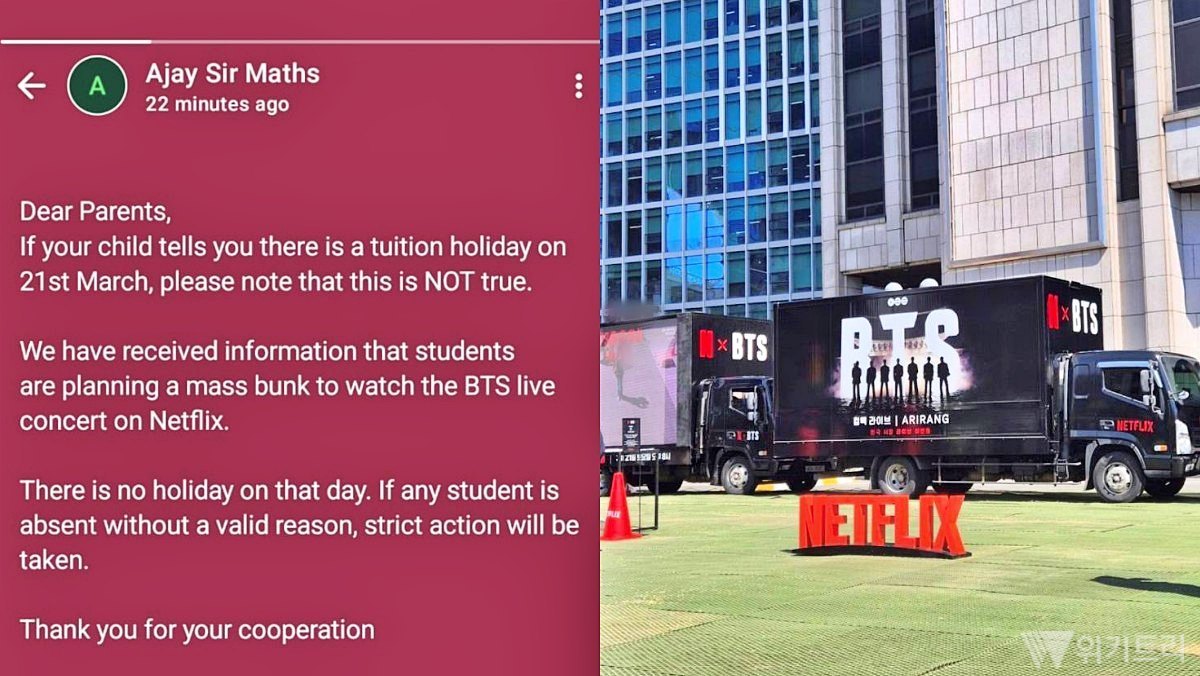 이 같은 해프닝은 BTS가 20일 오후 1시에 발표하는 정규 5집 앨범 '아리랑(ARIRANG)'과 이튿날인 21일 저녁 8시에 개최되는 'BTS 컴백 라이브: 아리랑' 공연에 대한 인도 현지의 높은 관심을 보여준다. 한국 시간으로 오후 8시에 시작되는 공연은 인도 현지 시각으로 오후 4시 30분에 해당한다. 이 시간대가 통상적인 방과 후 학원 수업 시간과 겹치면서, 실시간 생중계를 보려는 학생 팬들이 학원 수업을 피하기 위해 "학원이 쉰다"는 거짓 소문을 퍼뜨린 것으로 보인다.