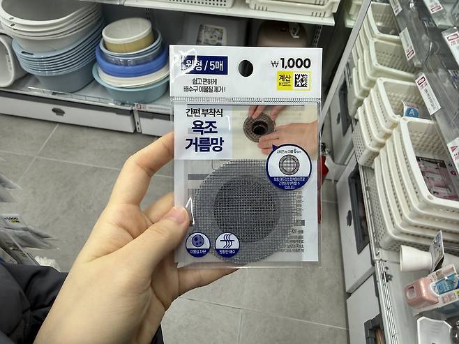 다이소 욕조 거름망은 배수구 위에 올려두기만 하면 머리카락을 간단히 걸러줍니다. 가격은 1000원이지만 기본 기능은 충분해 욕실 필수템으로 꼽힙니다.