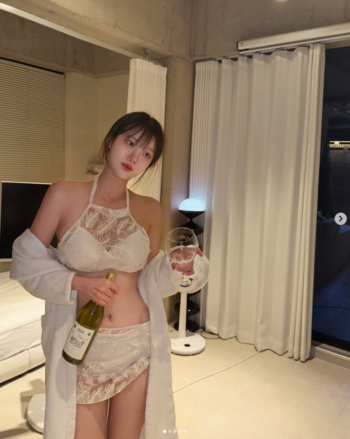 단순한 노출보다는 무드 자체를 즐길 줄 아는 그녀의 센스는 화이트 시스루 룩에서 빛을 발해요.