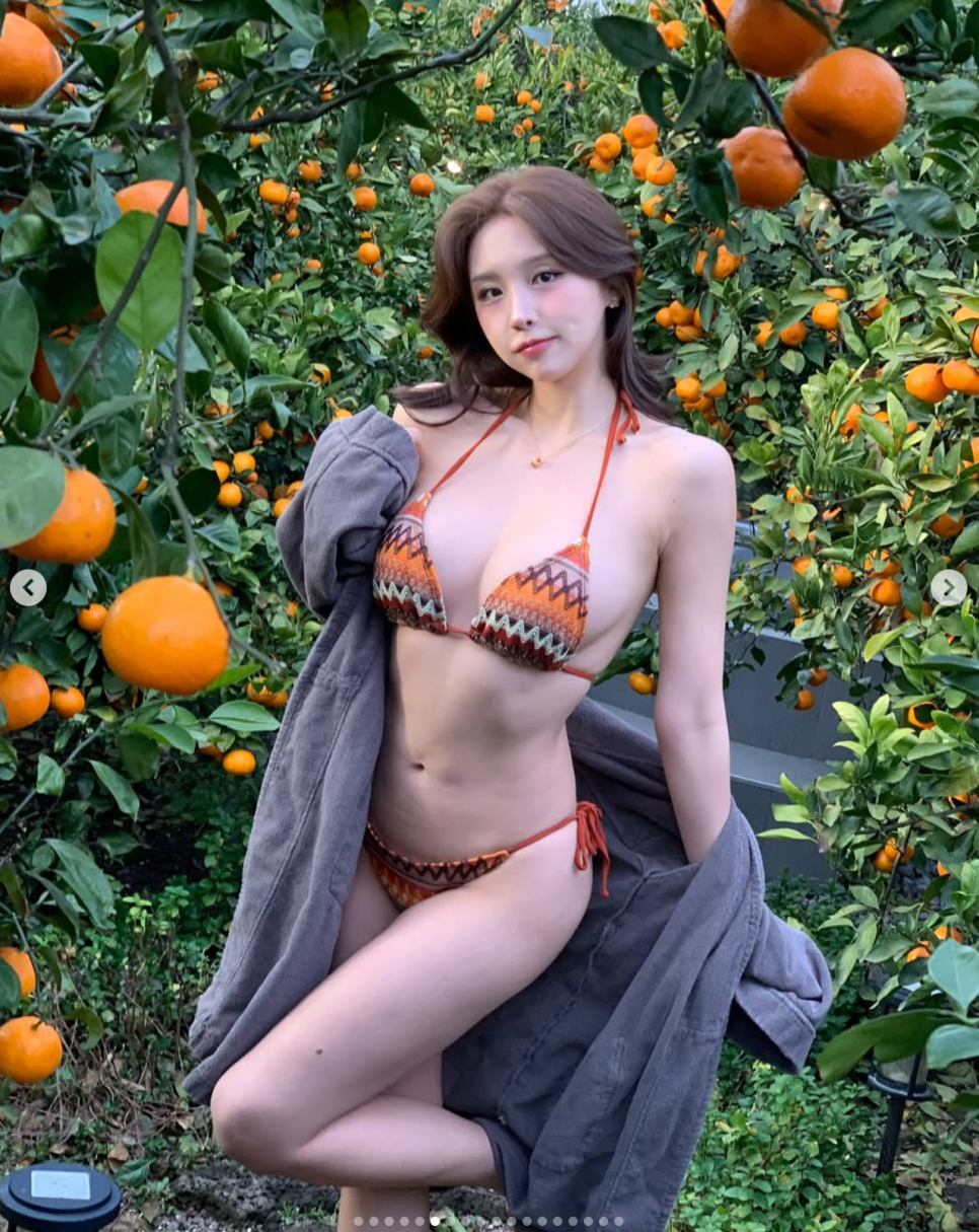 바로 제주도 감성을 듬뿍 담은 정소연 비키니 스타일링 이야기예요. 귤밭과 온천을 배경으로 역대급 피지컬을 뽐낸 그녀의 룩을 아주 힙하게 분석해 드릴게요.