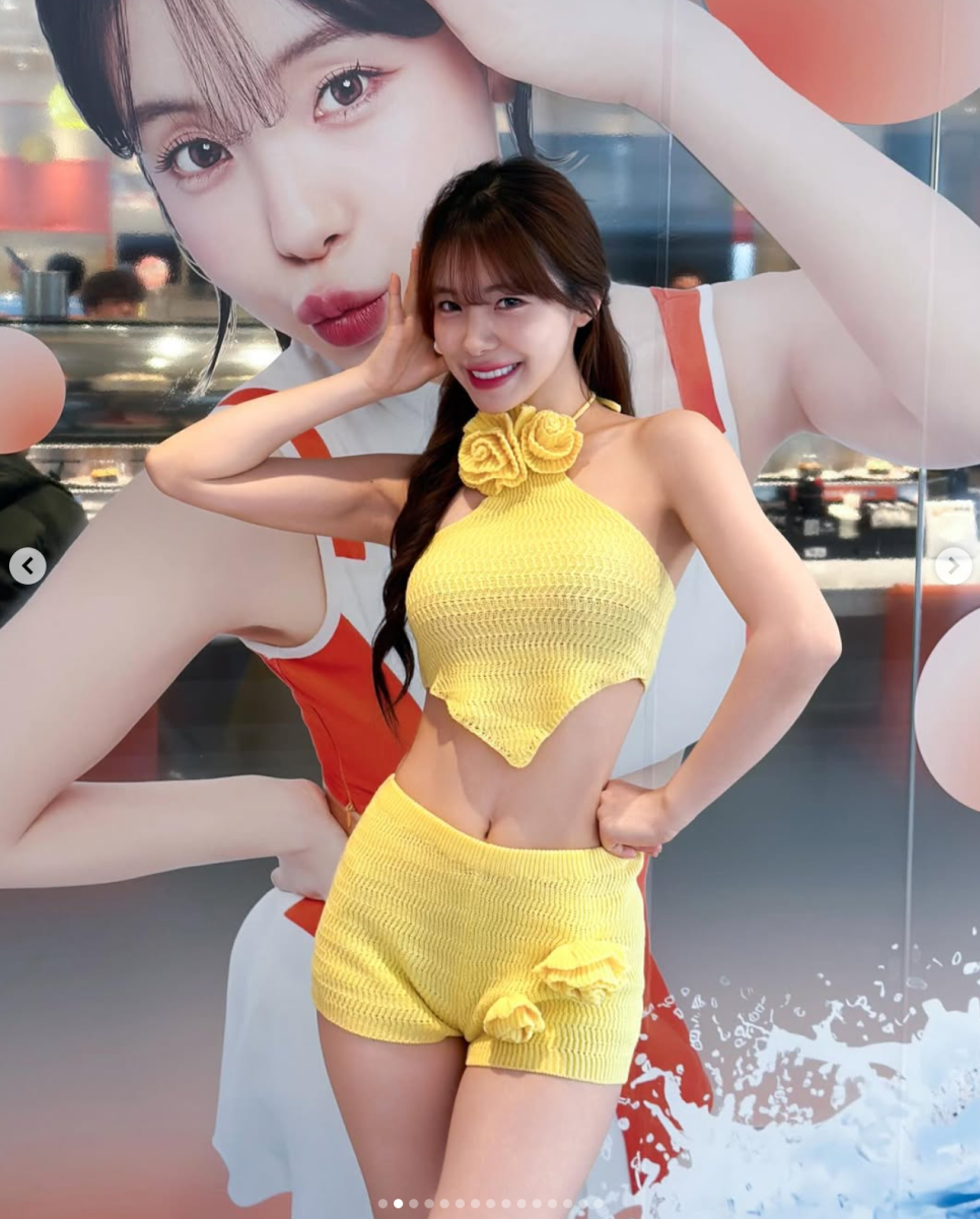 어쩜 이렇게 상큼하면서도 아찔할 수 있는지 진짜 요정 같지 않나요? 특히 튜브톱 아래로 고스란히 드러난 군살 제로의 한 줌 개미허리와 배꼽 노출은 보는 사람마다 감탄을 자아내게 만들더라고요.