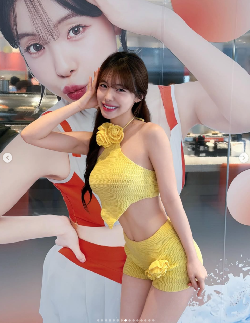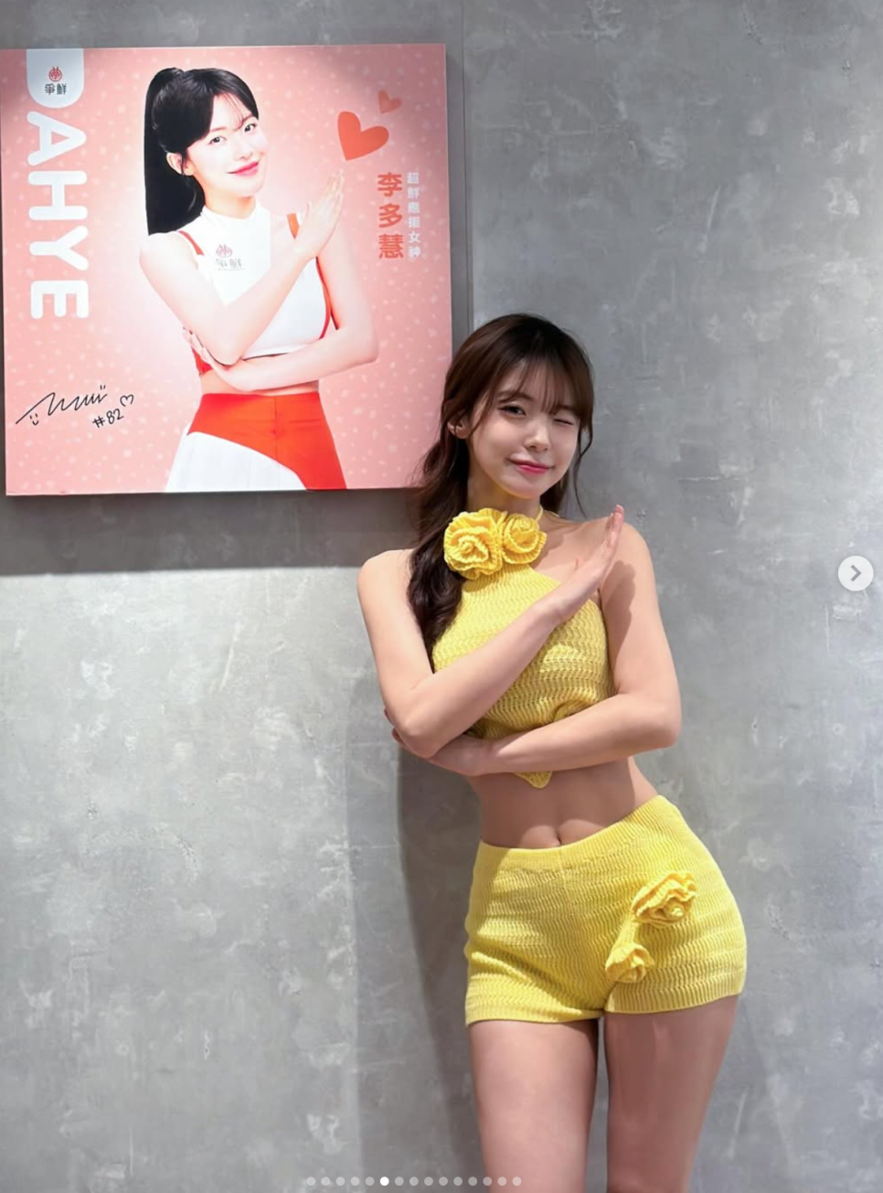 자신의 등신대 옆에서 똑같은 포즈를 취하며 장난스럽게 인증샷을 남기는 모습이 너무 사랑스럽지 않나요? 대만 현지에서 얼마나 핫한 모델로 활동 중인지, 길거리에 세워진 입간판 사진 한 장으로 완벽하게 설명이 되더라고요.