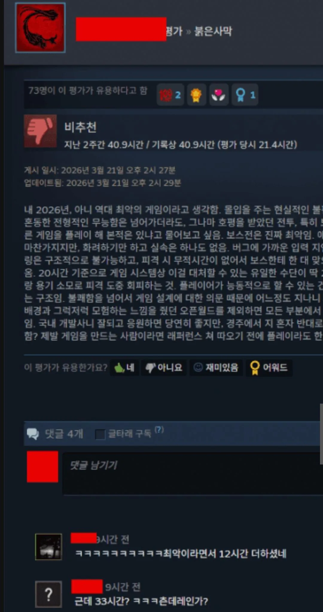 "붉은 사막은 2026년, 아니 역대 최악의 게임이다." (라는 리뷰를 쓰고나서 20시간 더함) 저분 현재 3일차 41시간 플레이.... 해외 입양인이 엄마를 찾습니다성심당이 대전에서 시작한 이유직장인 단골 많을거 같은 식당큰일 났다는 LG 유플러스 유출 사태친딸 성폭행 전과자, 출소 1년 만에 또 성폭행