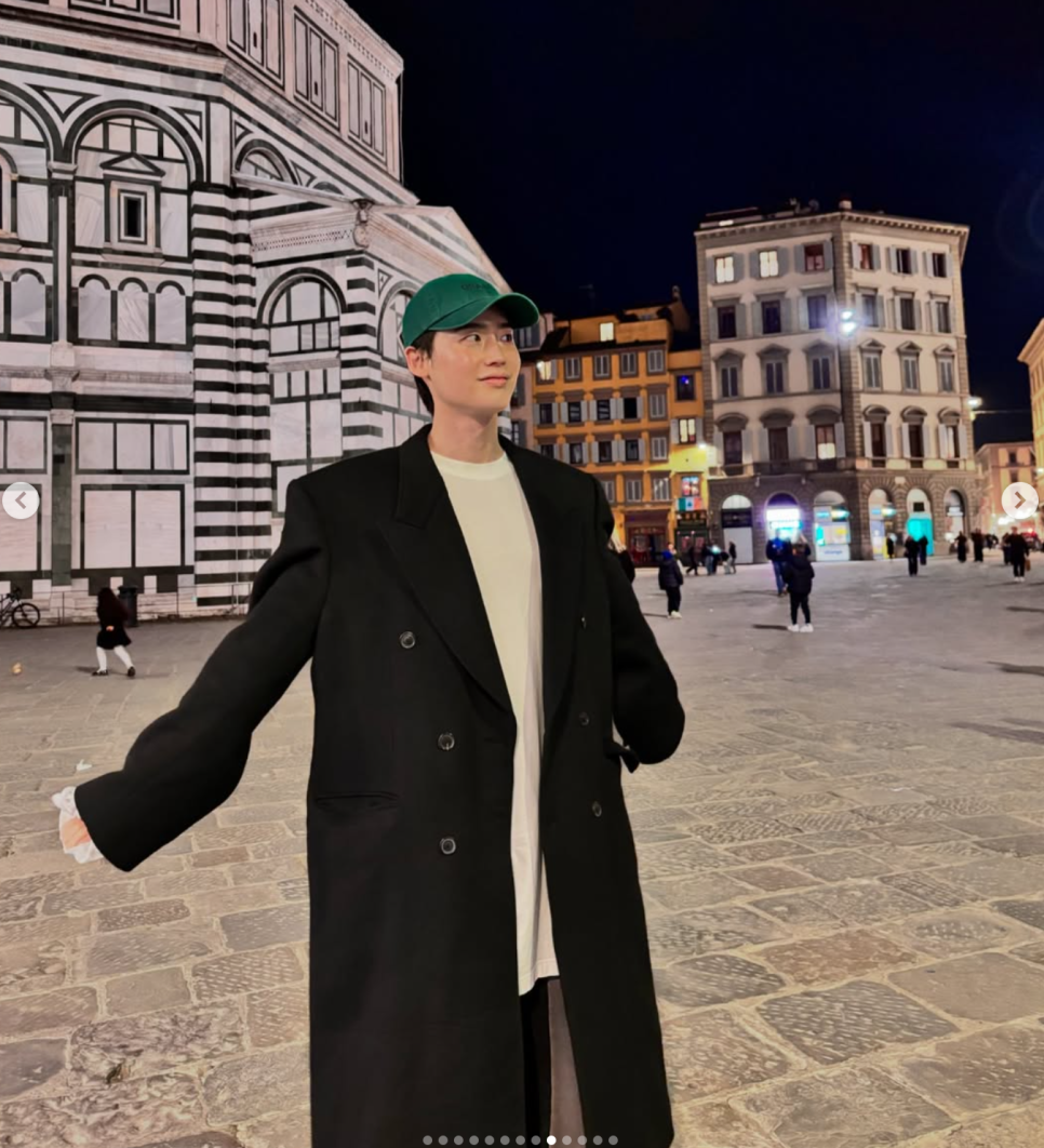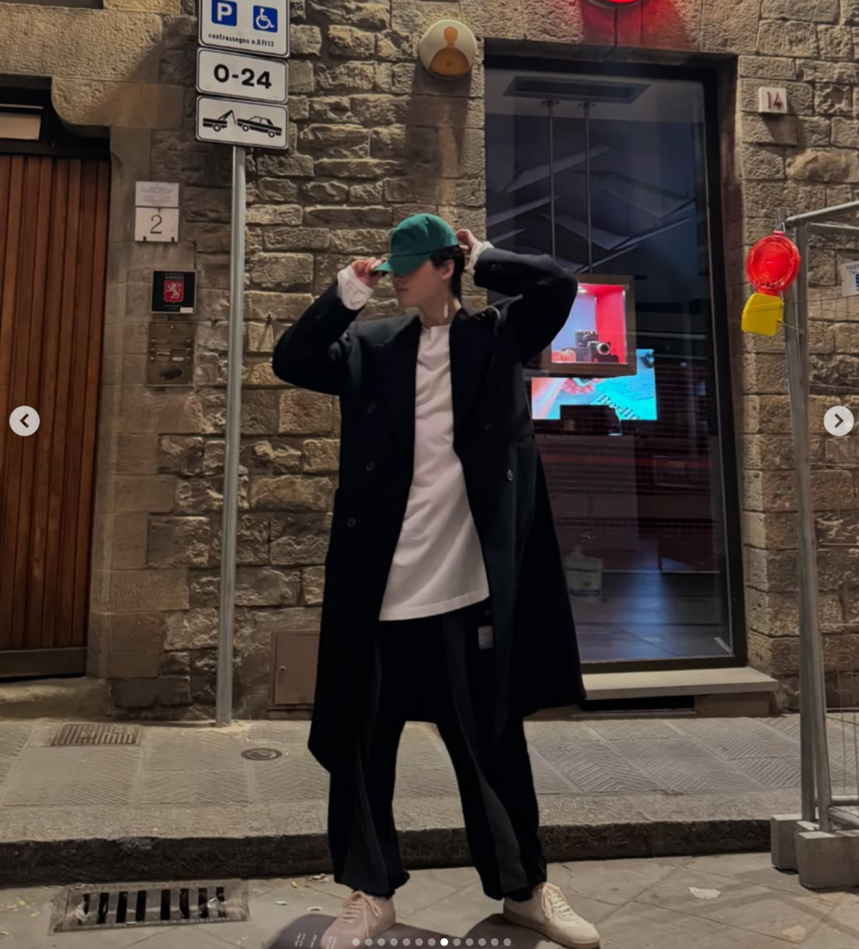 이탈리아의 아름다운 성당을 배경으로 발랄한 포즈를 취하거나, 바닥에 앉아 친구의 사진을 찍어주는 모습에서는 그의 여유롭고 즐거운 시간을 엿볼 수 있었답니다. 보기만 해도 기분이 좋아지는 사진들이었어요. 😊