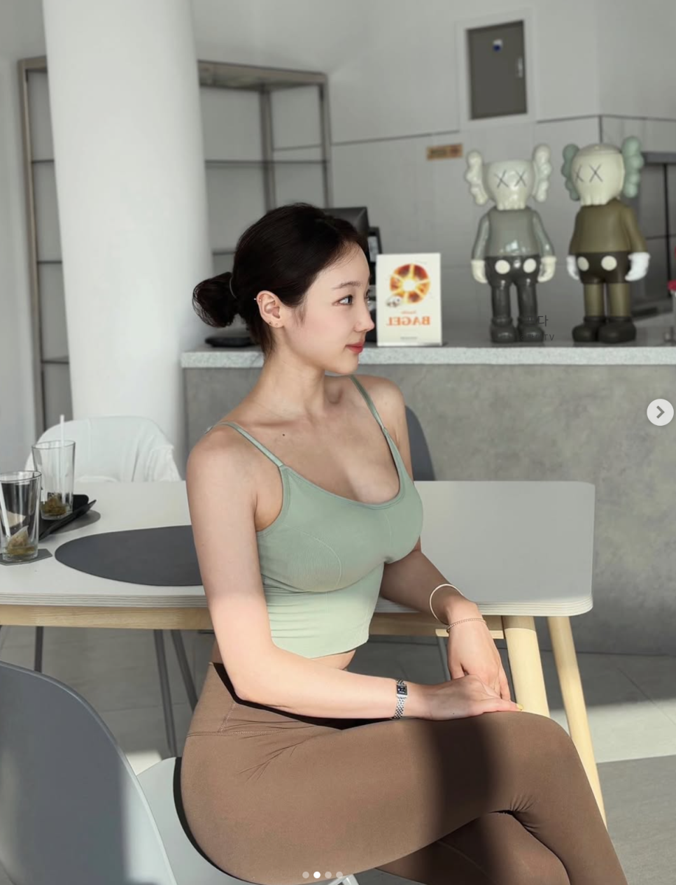 포징 팁: 거울 셀카를 찍을 때 몸을 살짝 틀어 S라인을 강조하거나, 하이 앵글을 활용해 비율을 돋보이게 해보세요.