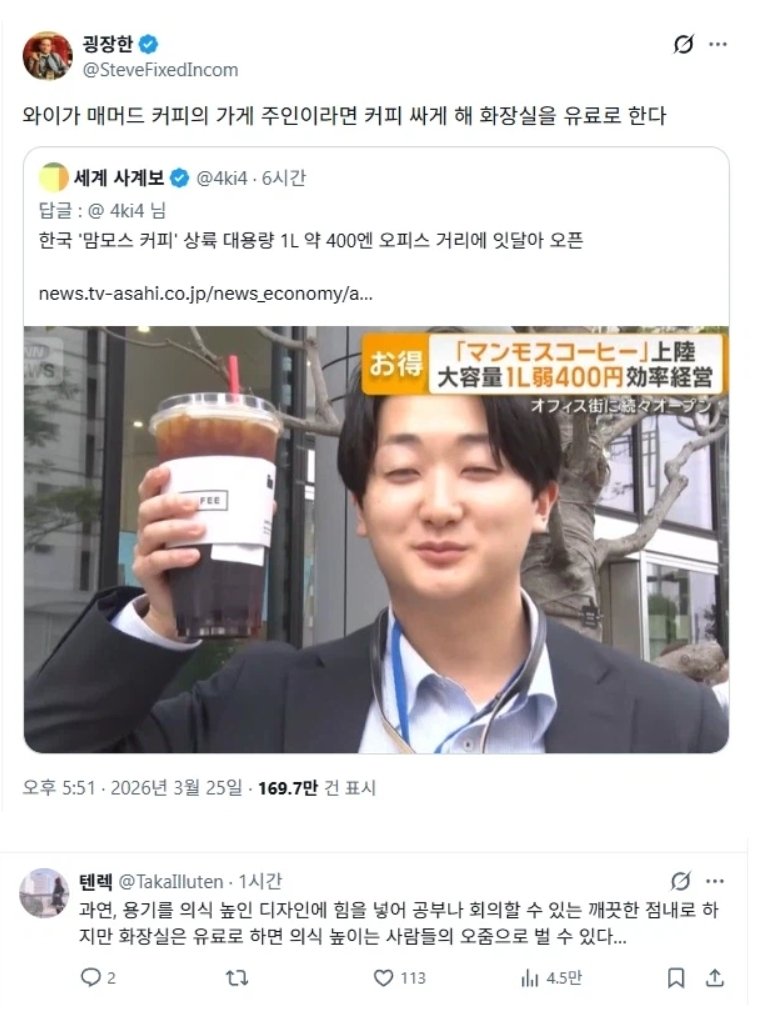 일본 아이스 커피는 500~600엔에 400ml 정도 한국식 아메리카노는 그 배 이상에 400엔 집들이 때문에 얼음 모아둔 친구전세계 라디오가 바로 재생되는 미친 사이트비주얼이 미쳐버린 성심당 핫도그 신제품붉은사막 k-산데비스탄 ㅋㅋㅋ전라도 여수 식당 '라도9900' 지리는 밥상