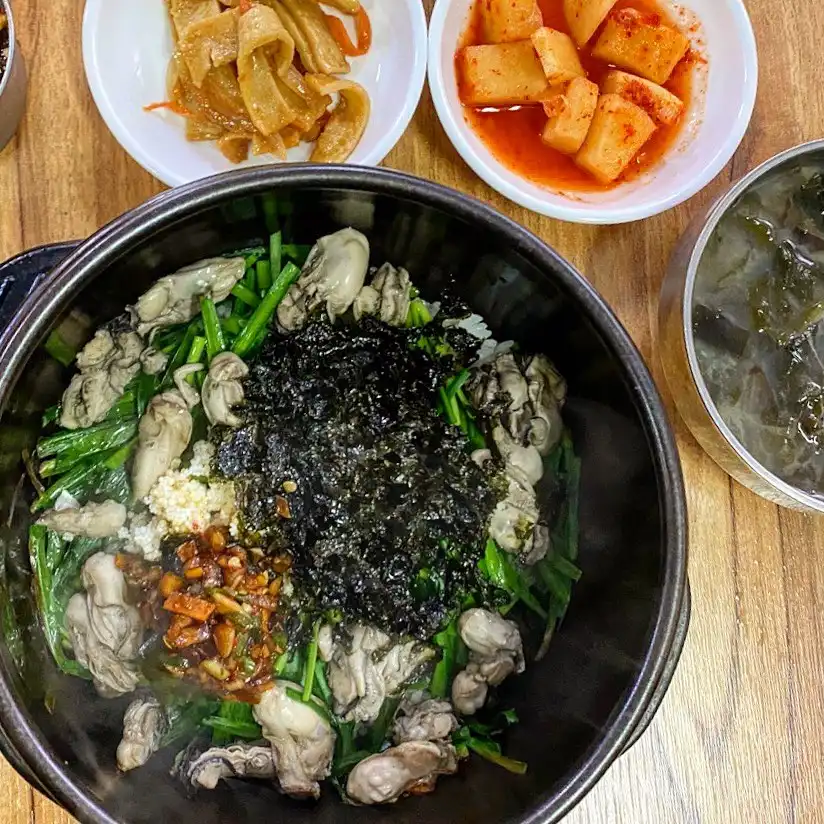 핫플레이스가 많기로 유명한 신당에서 오랜시간동안 영업을 이어온 굴 전문점. 24시간 연중무휴로 운영하고 있어 밤 늦은시간이나 아침에도 찾는 손님이 많다. ‘굴국밥’은 굴과 버섯을 넉넉하게 넣은 탕에 밥을 토렴해 넣어 담백한 맛이 일품. 간이 세지 않은 편이라 굴과 버섯의 향미가 국물에 그대로 담겨 있다. 따로 국밥으로 제공되는 ‘굴탕’도 좋다. 생굴 시즌에는 통영에서 매일 직송하는 굴로 내어주는 굴회도 추천한다.