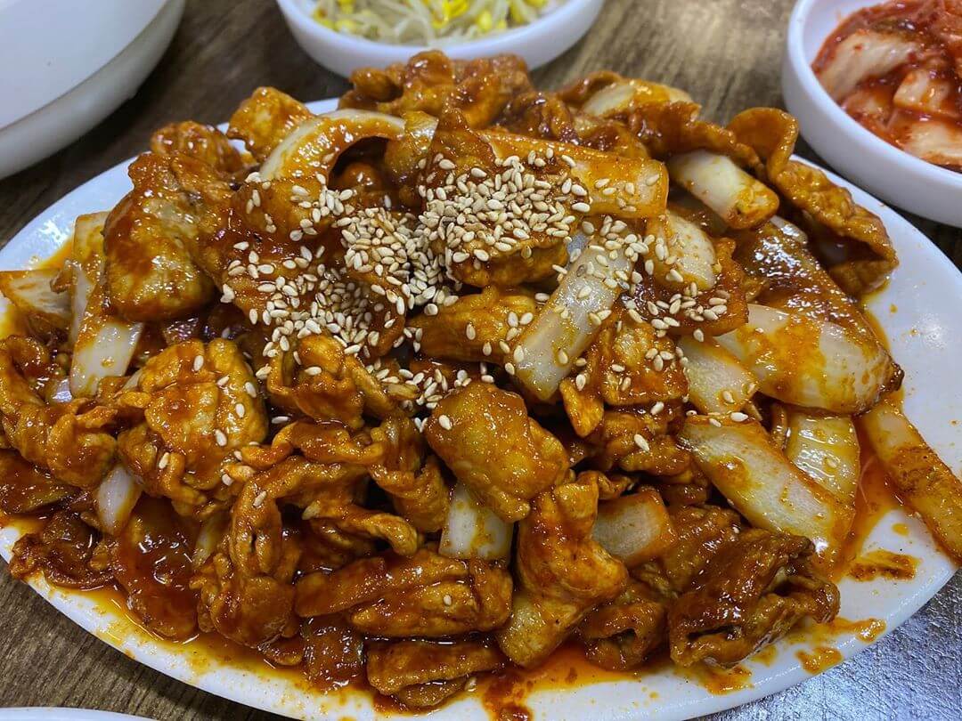 ‘별미볶음점’은 직화 방식으로 제육, 낙지, 오징어, 주꾸미 등 다양한 볶음 요리를 선보인다. 주문과 동시에 조리를 시작하는 주방에서 벌어지는 불 쇼가 식사 전 기대감을 높여준다. 대표 메뉴는 매콤달달한 양념과 원초적인 불 맛이 조화롭게 어우러진 ‘제육 직화’. 비계가 적어 담백한 돼지고기와 강렬하게 풍기는 불 향의 조화가 일품이다.
