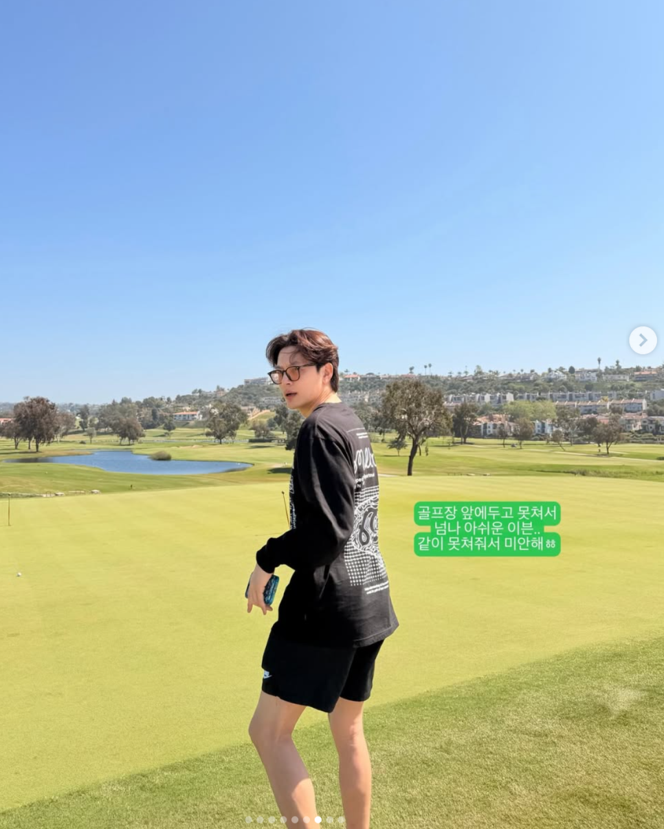 이다해는 사진과 함께 “골프장 앞에 두고 못 쳐서 너무 아쉬운 이븐. 같이 못 쳐줘서 미안해”라고 덧붙이며 남편 세븐에 대한 애정을 드러냈습니다.