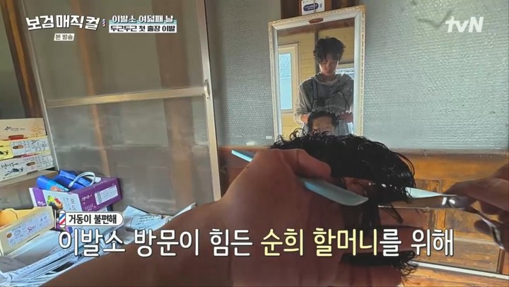 준비 과정에서 예상치 못한 상황도 있었다. 이발에 필요한 커트보를 깜빡 잊어 다시 이발소로 되돌아가야 했으나, 부족함 없이 다시 준비를 마친 뒤 할머니의 집 한 켠에 즉석으로 미용 공간을 마련했다.