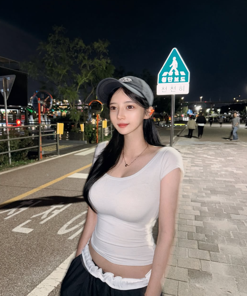 하이웨이스트 하의를 골라 허리 라인을 가늘게 강조한 점도 우리가 꼭 기억해야 할 팁이에요.