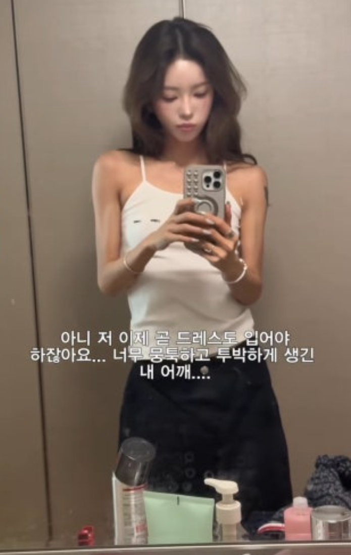 저도 공감하는 부분인데, 곧 드레스를 입어야 하는데 어깨가 뭉툭하고 투박하게 생긴 것 같아 고민이 많았다고 해요. 여성분들이라면 한 번쯤 해봤을 법한 고민이 아닐까 싶어요. 예쁜 드레스 핏을 위해 어깨 라인에 신경 쓰는 건 당연한 마음인 것 같아요.