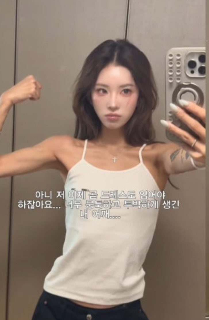 "살 쪘을 때도 팔 라인이 늘 고민이었는데, 체지방을 다 없애고 나니 이번에는 어깨 라인이 자꾸 신경 쓰였다"고 하더라고요.