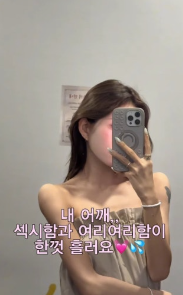 그녀는 영상과 함께 올린 글에서도 만족감을 이어갔는데요. 평소에도 어깨 모양에 관리를 많이 했지만, 뭉툭한 닭가슴살 모양이 되어 고민이 많았다고 해요.