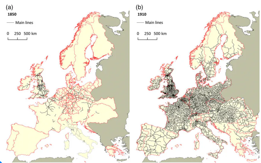 철도는 19세기 후반에가면 하루가 아니라 '시간당' 100km 짜리도 나오고 하루에 800 ~ 1,000km를 가는 경우도 있었음. 파발마 형태가 아니라 대규모로 보냄에도.그것도 단순 대규모가 아니