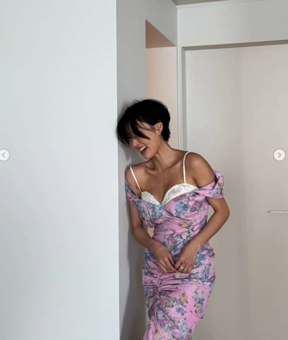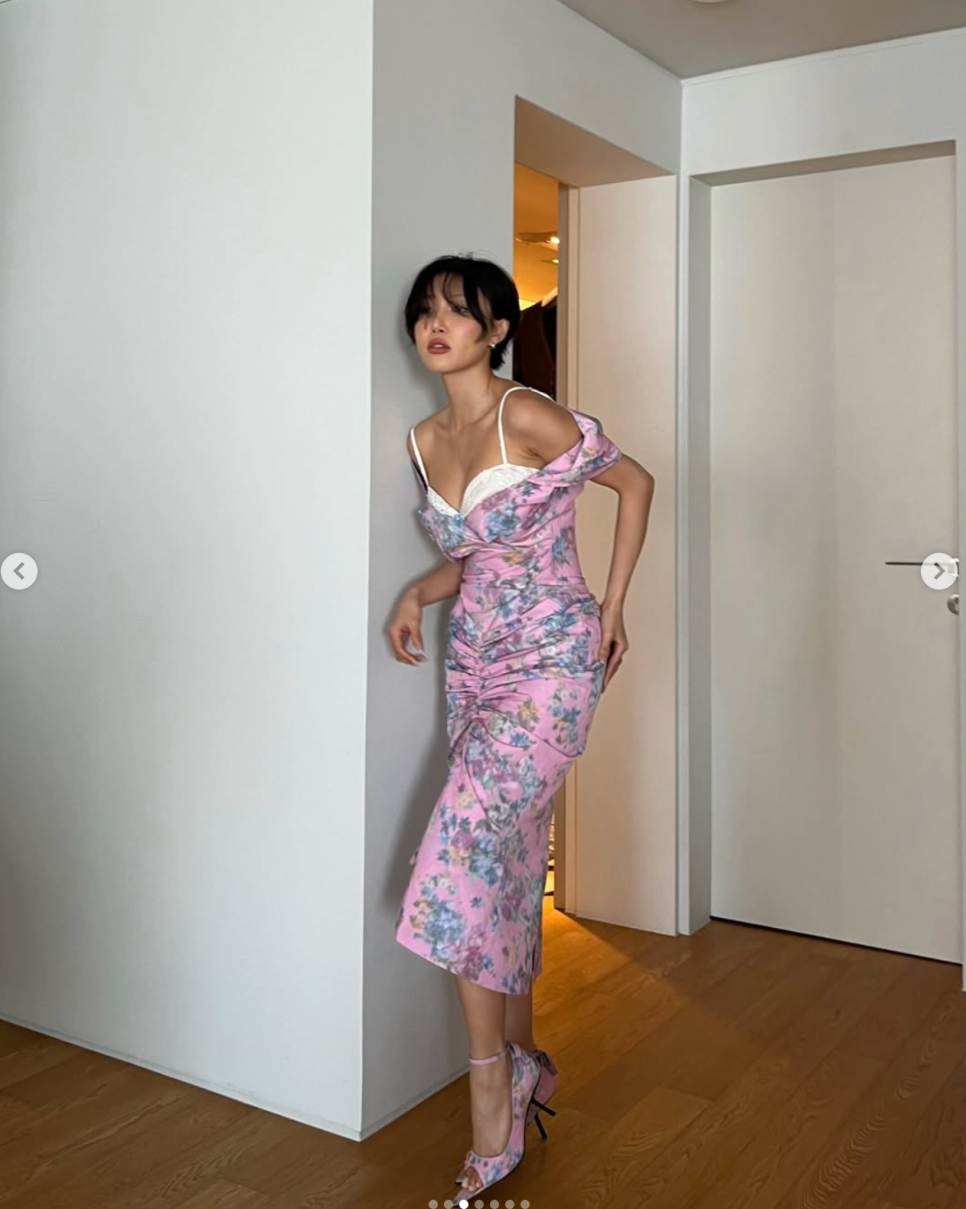 그녀는 최근 자신의 SNS에 여러 장의 사진을 올리며 팬들에게 안부를 전했어요. 핑크 플라워 패턴의 드레스를 입고 다양한 포즈를 취하고 있었는데, 드레스가 몸에 착 붙는 오프숄더 디자인이라 슬림해진 몸매가 더욱 돋보이더라고요.