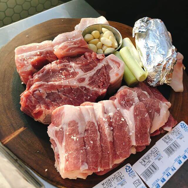 버크셔와 요크셔, 듀록 돼지의 교배종인 YBD 인기를 이끈 주역이라고 할 수 있어요. 별다른 양념 없이 고기만 먹어도 풍부한 육즙과 진한 지방의 풍미가 일품이랍니다. 알맞게 익은 고기는 소금에 살짝 찍어 먹고 이후에는 갈치 속젓과 간장 소스를 곁들여보세요.