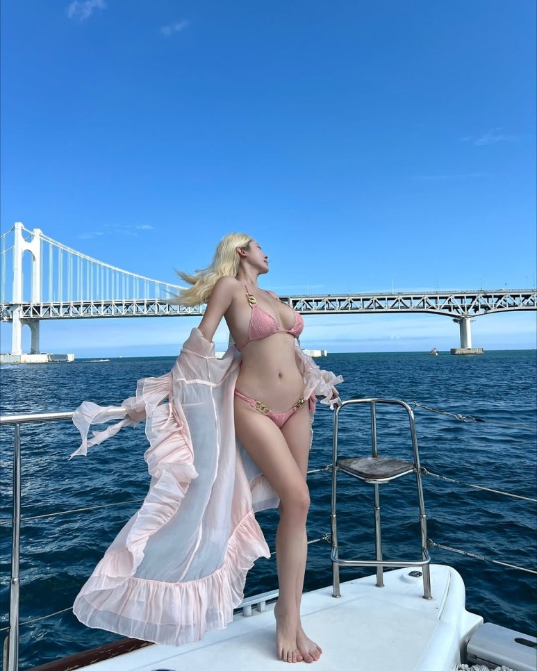 눈부신 금발 머리와 세련된 패션 감각으로 무장한 그녀가 보여주는 두 가지 상반된 매력! 리조트 인피니티 풀에서의 우아함부터 요트 위에서의 활기찬 모습까지, 지금부터 낱낱이 파헤쳐 보겠습니다! 💥🤫👆