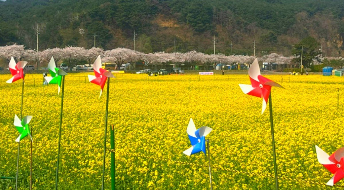 유채꽃·벚꽃 동시에 즐긴다… 입장료 0원인데 4.2km 이어진 ‘벚꽃 터널’