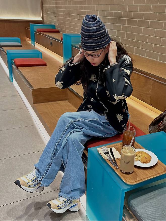 “에스닉한 자수와 와이드 데님의 믹스매치”… 정호연의 쿨한 카페 나들이 룩