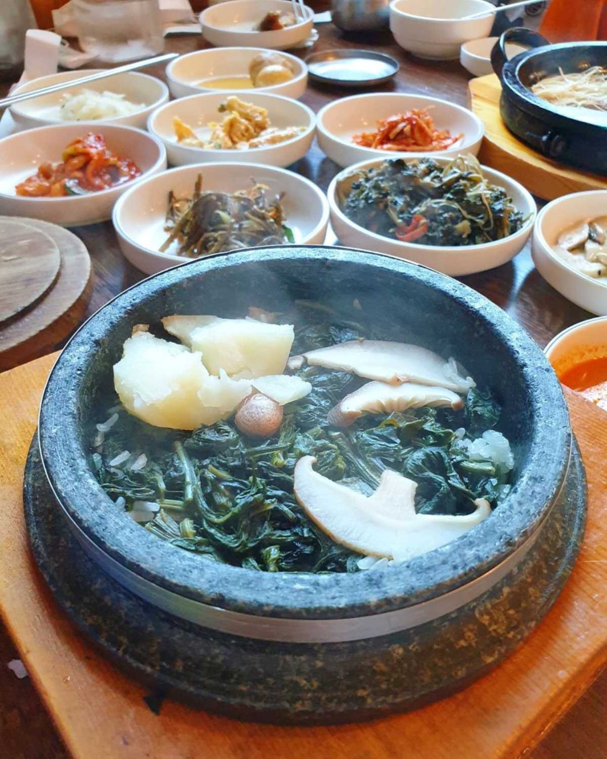 속 편한 산채나물과 더덕구이를 맛볼 수 있는 식당. 고풍스러운 분위기가 물씬 풍기는데 개량한복을 곱게 입은 서버와, 대장금 속 임금이 된 것 같은 BGM도 이집만의 분위기에 한 몫한다. ‘일품정식’은 더덕구이와 굴전, 황태구이와 함께 알록 달록 색감이 예쁜 일곱가지 산채나물이 나온다. 더덕 사이즈가 큼직해 한조각 베어물면 아삭한 식감과 풍부한 채즙이 일품이다.