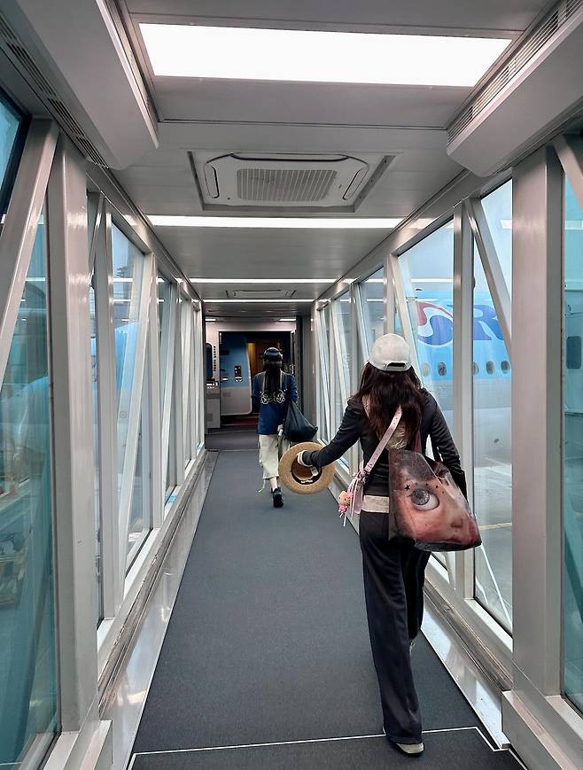 백에 달린 귀여운 키링 디테일은 산다라박 특유의 장난기 가득한 면모를 보여주며 룩의 완성도를 높였습니다.