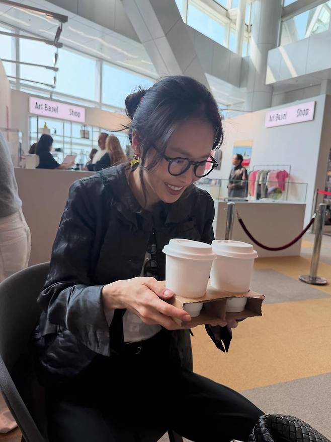 지적인 이미지를 배가시키는 검정 뿔테 안경은 이번 스타일링의 완성도를 높여주는 결정적인 요소입니다.