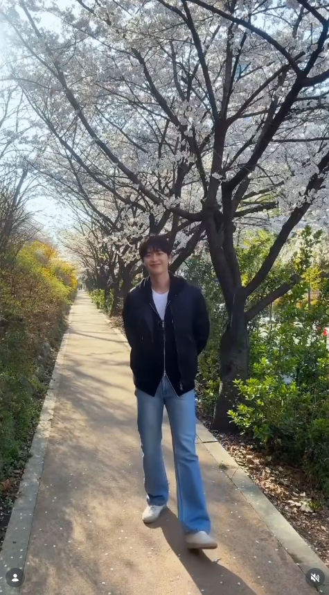 햇살이 스며든 벚꽃 아래에서 더욱 따뜻해진 그의 비주얼은 보는 이들마저 미소 짓게 만들었습니다. 꾸밈없는 순간마저 화보처럼 완성한 그의 모습이 정말 인상 깊더라고요.