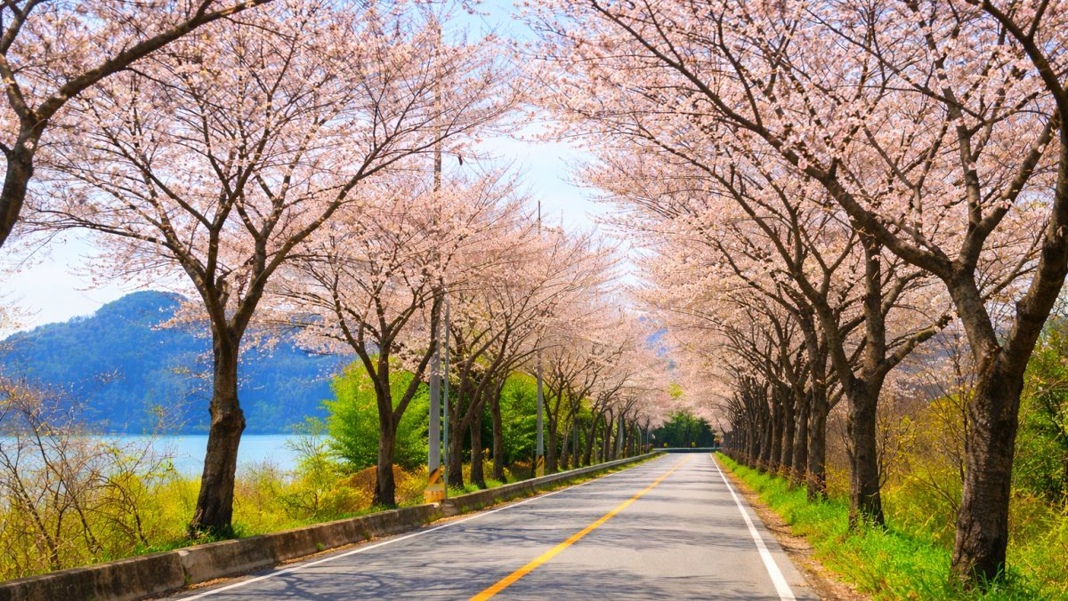 경남 진주에 자리한 진양호는 1970년 낙동강 수계 최초의 다목적 댐인 남강댐이 건설되면서 형성된 인공호수로, 호수 주위를 도는 일주도로가 정비되면서 가로수로 심은 벚나무들이 수령 30~50년을 넘기며 거대한 터널을 이루게 됐다.