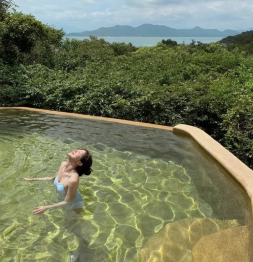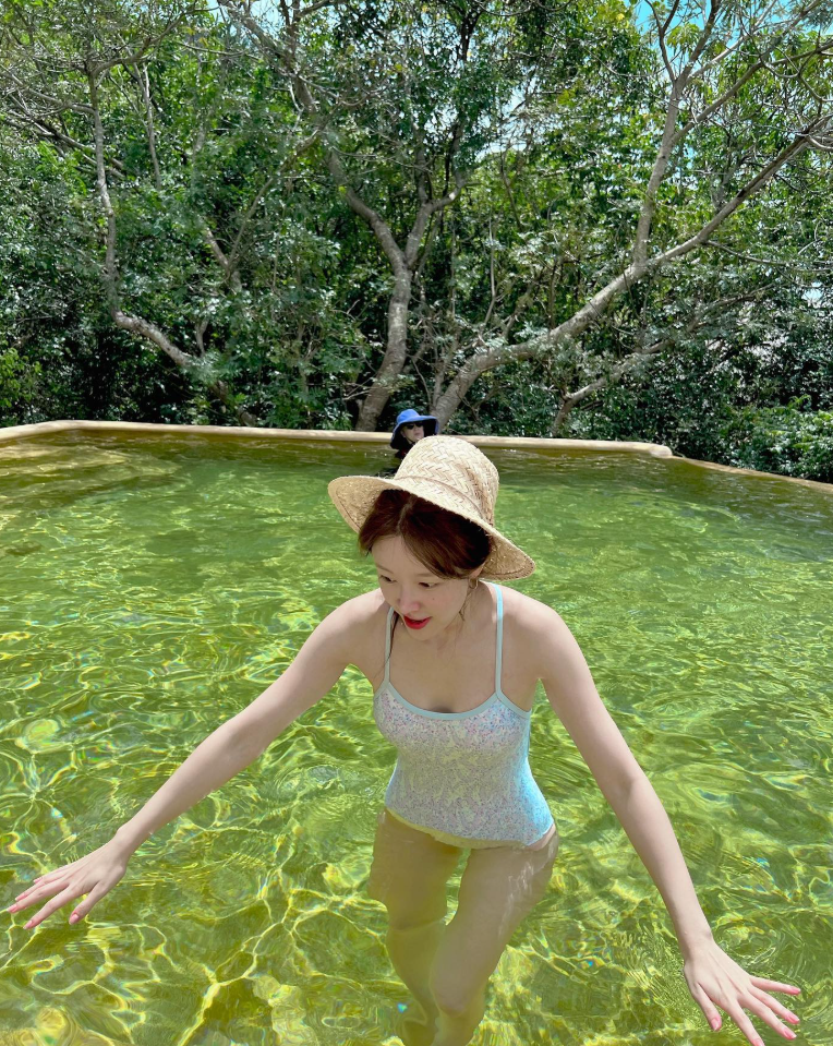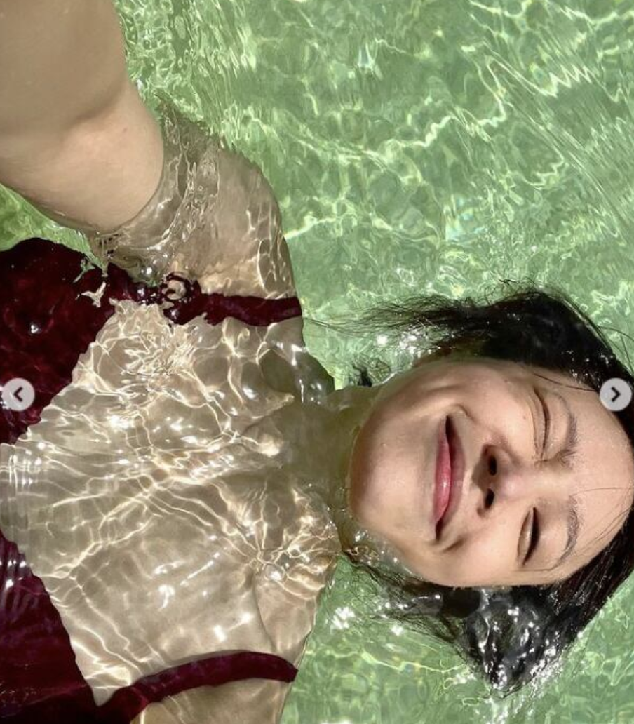 패션 센스도 빼놓을 수 없죠! 하니가 선택한 버건디 컬러의 비키니는 깊고 차분한 톤 덕분에 훨씬 세련된 분위기가 나더라고요. 레드보다 부담스럽지 않으면서도 존재감은 확실한 느낌이에요.