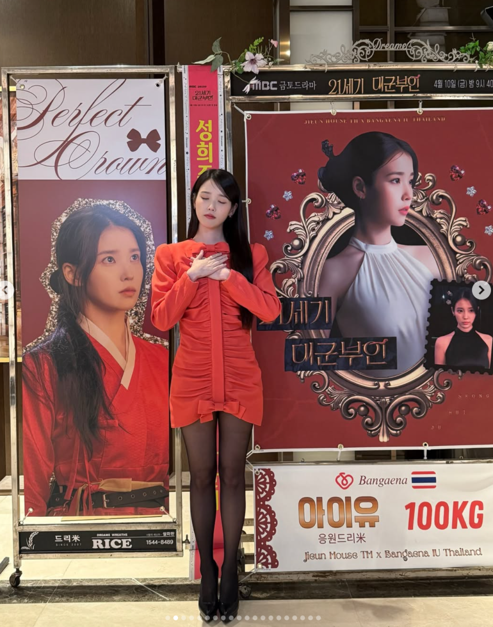 아이유, 레드 원피스로 완성한 8등신 착시드라마 복귀 준비 완료