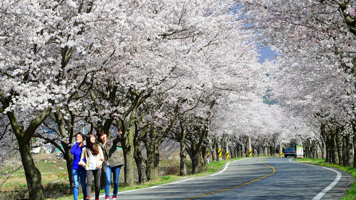 경북 청도군 각북면에 자리한 각북 벚꽃길은 1999년부터 2000년까지 당시 재경향우회장 이창상 씨와 지역 주민들이 힘을 합쳐 묘목비를 기탁하며 심기 시작했다. 지방도 911호선을 따라 헐티재에서 오산리, 명대리를 거쳐 이서교까지 이어지는 약 20km의 벚꽃 도로가 눈길을 사로잡는다. 산길과 천변을 따라 조성되어 있어 평지의 벚꽃보다 훨씬 풍성한 벚꽃 터널이 장관을 이룬다.