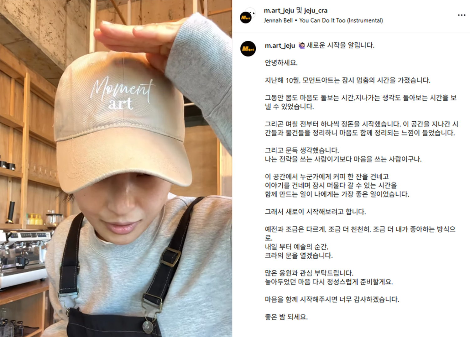 갑작스러운 폐업 선언 이후 수개월, 적막이 감돌던 공간에 다시 온기가 돌기 시작했다. 최근 최유라는 카페 SNS를 통해 그간의 심경을 담담히 고백하며 재시작을 알렸다.