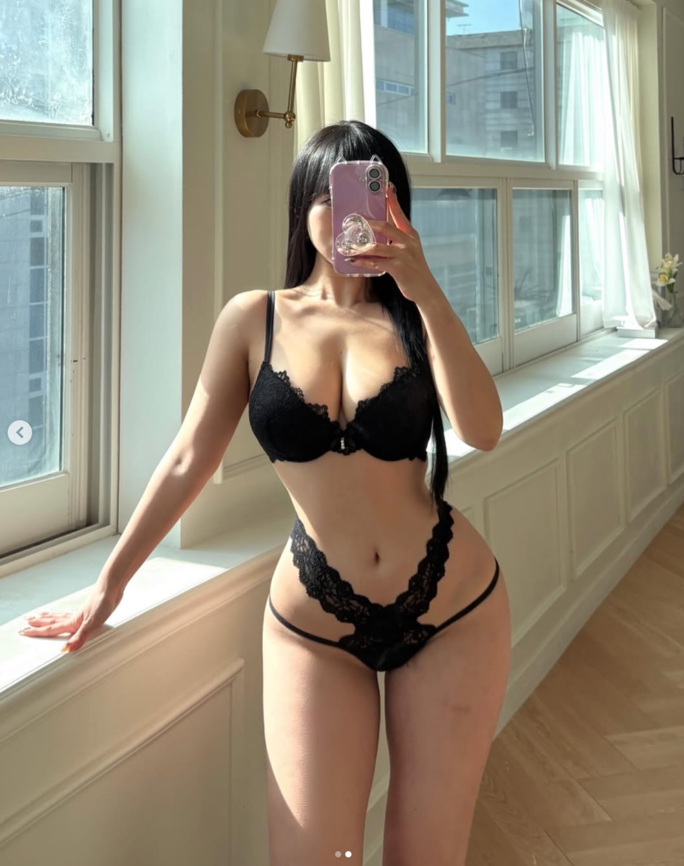 모노키니와는 또 다른 매력을 보여준 블랙 레이스 란제리 룩도 놓칠 수 없죠!