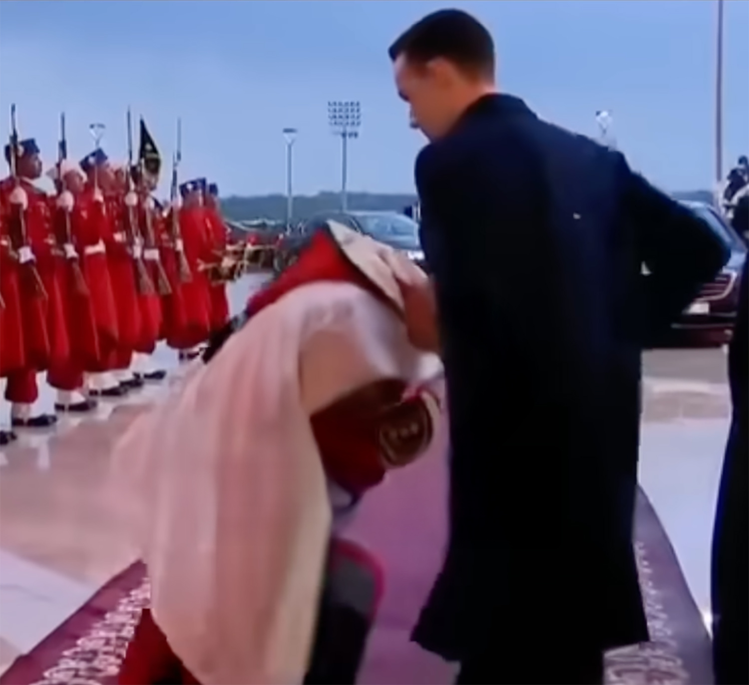 모로코 왕실에는 상대의 서열이 자신보다 낮다고 판단되면 손이 닿는 찰나의 순간에 번개처럼 손을 빼버리는 독특한 전통이 존재한다. 만약 트럼프가 평소처럼 상대를 낚아채려 했다가 왕세자가 손을 쏙 빼버리면 트럼프는 허공에 손을 휘두르는 꼴이 된다. 이러한 장면이 전 세계에 생중계될 경우 트럼프가 겪게 될 망신은 이루 말할 수 없을 만큼 클 것이 분명했다.