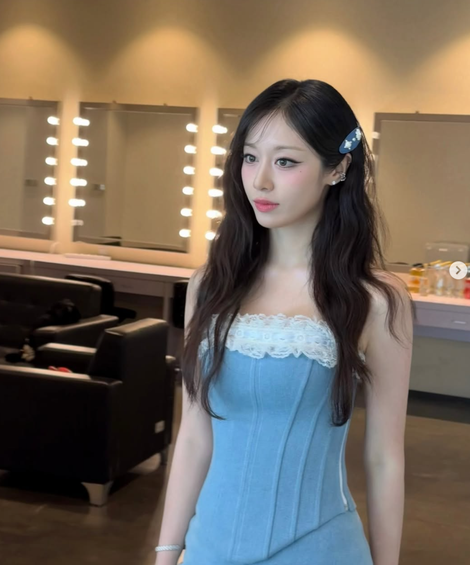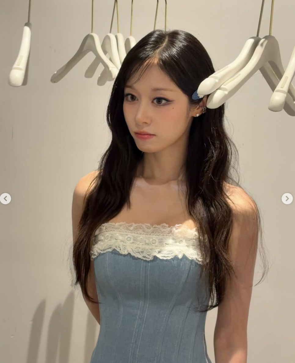 공개된 사진들은 바로 중국에서 열린 팬미팅 현장에서 촬영된 것들이었는데요, 사진 속 지연은 순백의 오프숄더 상의를 입고 의자에 앉아 어딘가를 응시하고 있었어요.