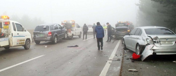 하지만 짙은 안개속에서 쏘나타가 첫 사고를 낸 뒤 뒤따르던 차량들이 감속하지 못해 8중, 3중 추돌사고로 이어졌습니다. 특히 8중 추돌사고의 5번째 운전자가 사고 수습을 위해 도로위에 나섰다 다른 차량에 치이면서 2차사고까지 발생하였습니다.