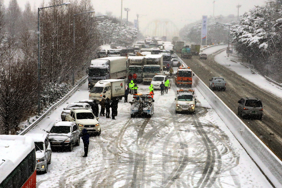 원인 눈길, 안전거리 미확보