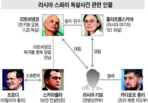 전직 러시아 FSB요원이었던 알렉산드르 발테로비치 리트비넨코(Alexander Litvinenko)는 영국으로 망명한 이후 푸틴 정권을 강력하게 비판하며 2권의 책도 집필하는 등 왕성한 반정부활동을 하고 있었습니다. 2006년 11월 1일 그는 FSB 동료였던 안드레이 루고보이, 옛 KGB 요원 출신 드미트리 콥툰을 만났고 이 두 명을 만난 후 심한 복부 통증을 느끼고 병원에 입원하였으나 급속하게 상태가 악화되어 2주만에 숨지고 말았습니다.