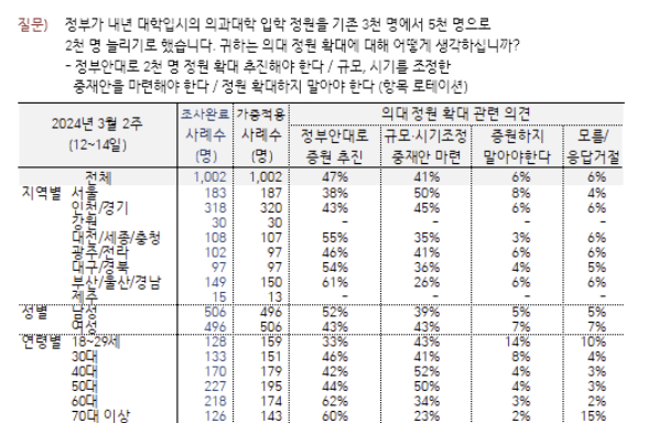 다소 의외인 의대 증원 여론조사 결과