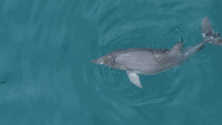 힘없이 멈춰 있는 새끼남방큰돌고래(종달이). 다큐제주·제주대 돌고래연구팀 제공