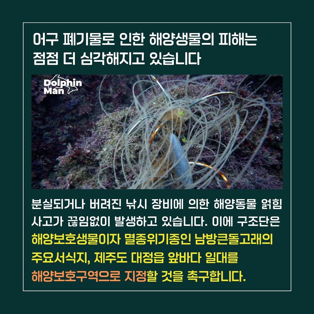 낚싯줄 등 폐어구에 걸린 채 이상 행동을 보이는 남방큰돌고래를 돕기 위한 긴급 구조작업이 진행됐다.