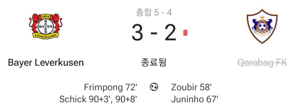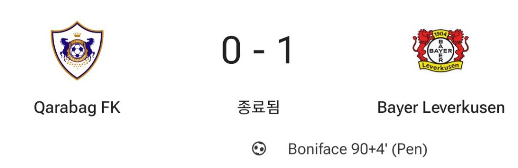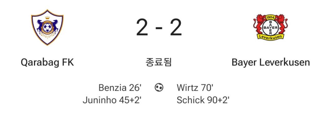 참고사항 - 위에 극장 2번이나 당했던 카라바흐는 유로파리그 조별리그때도 레버쿠젠 만나 극장 PK로 진 적이 있다