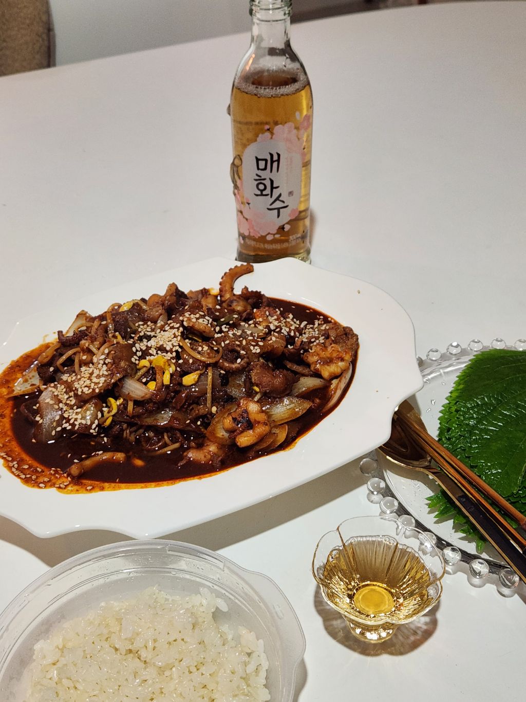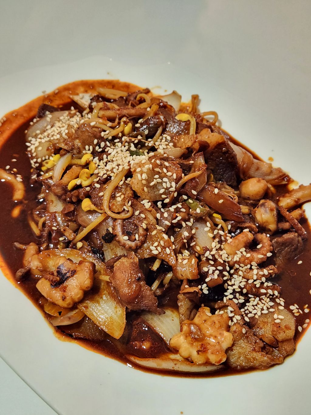 콩나물불고기에 낙지도 넣어서 먹음