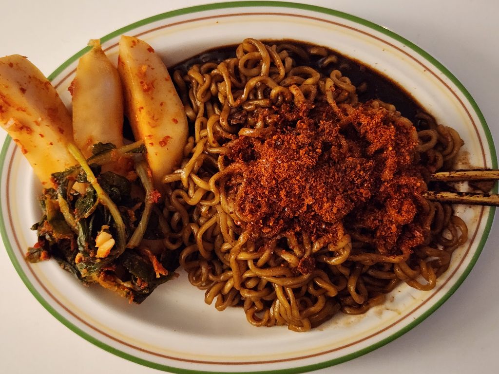 짜파게티는 총각김치랑 머거야하는거 아시조