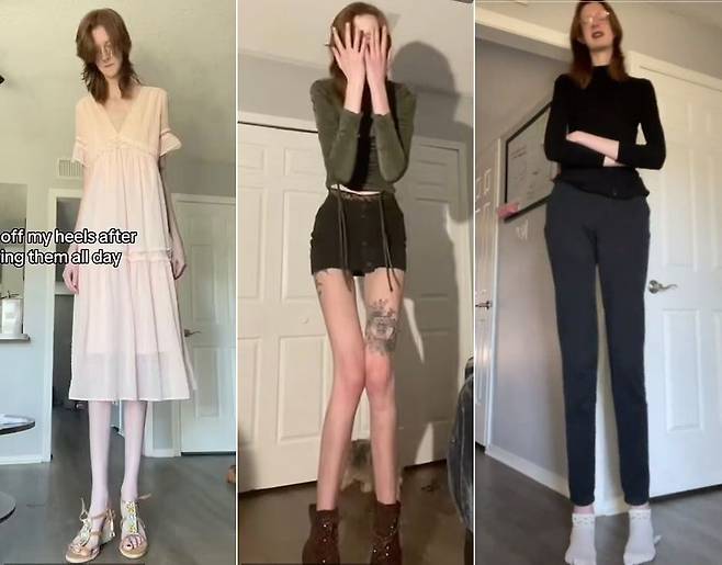 다리길이 134㎝로 ‘세계에서 가장 다리가 긴 여성’ 기네스 기록을 보유 중인 미국의 20대 여성이 소셜미디어를 통해 일상의 고충을 토로했다. 이 여성은 17세 때 기네스 기록을 세웠고, 현재까