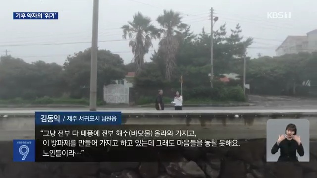 "그냥 전부 다 태풍에 전부 해수(바닷물) 올라와 가지고, 이 방파제를 만들어 가지고 하고 있는데 그래도 마음들을 놓질 못해요, 노인들이라……."
